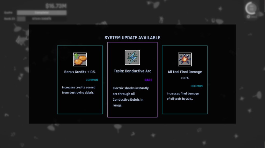 - システム: デブリ破壊、資源回収、ツールのローグライト強化